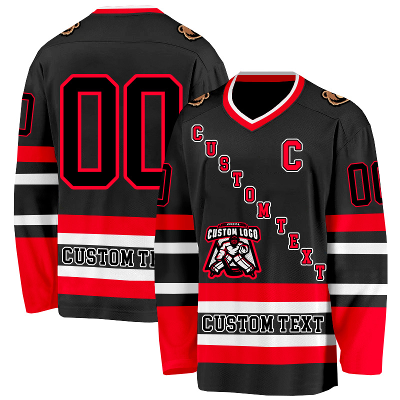 Custom black striped casual ice hockey jersey