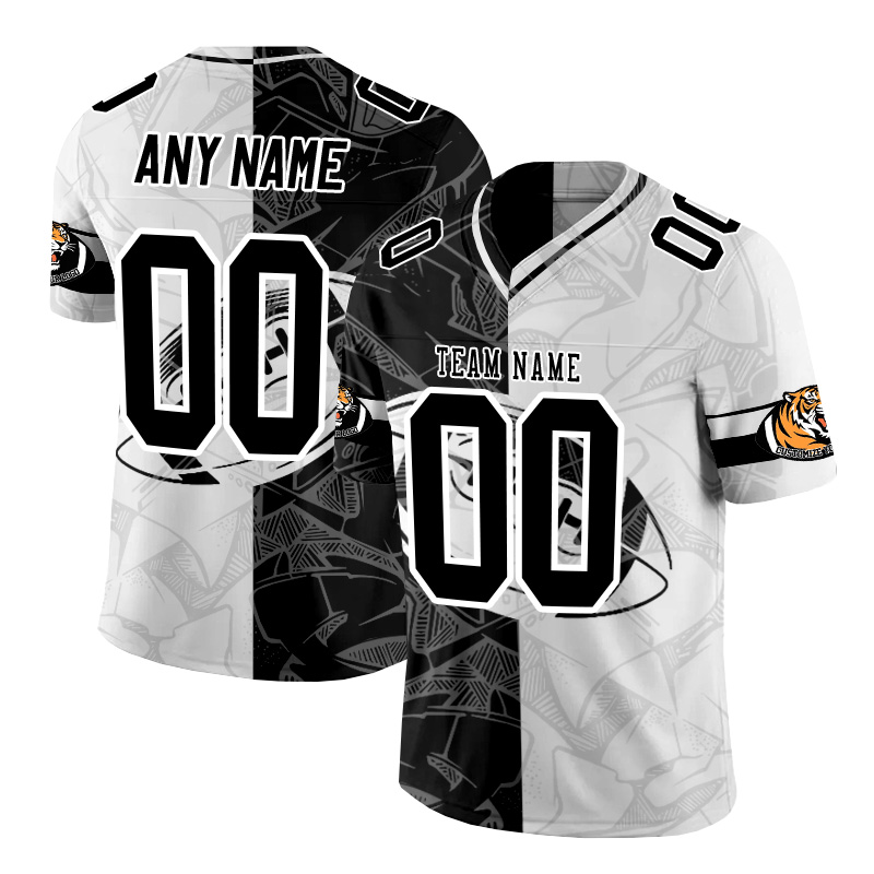 Personalized black and white patchwork American football jersey