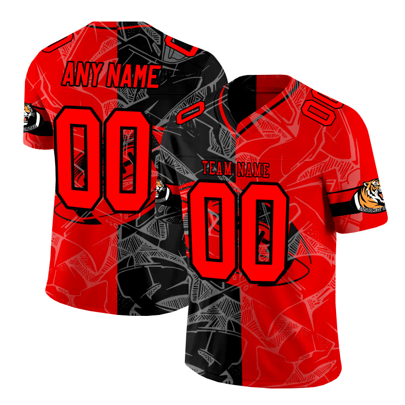 Personalized black and red patchwork American football jersey