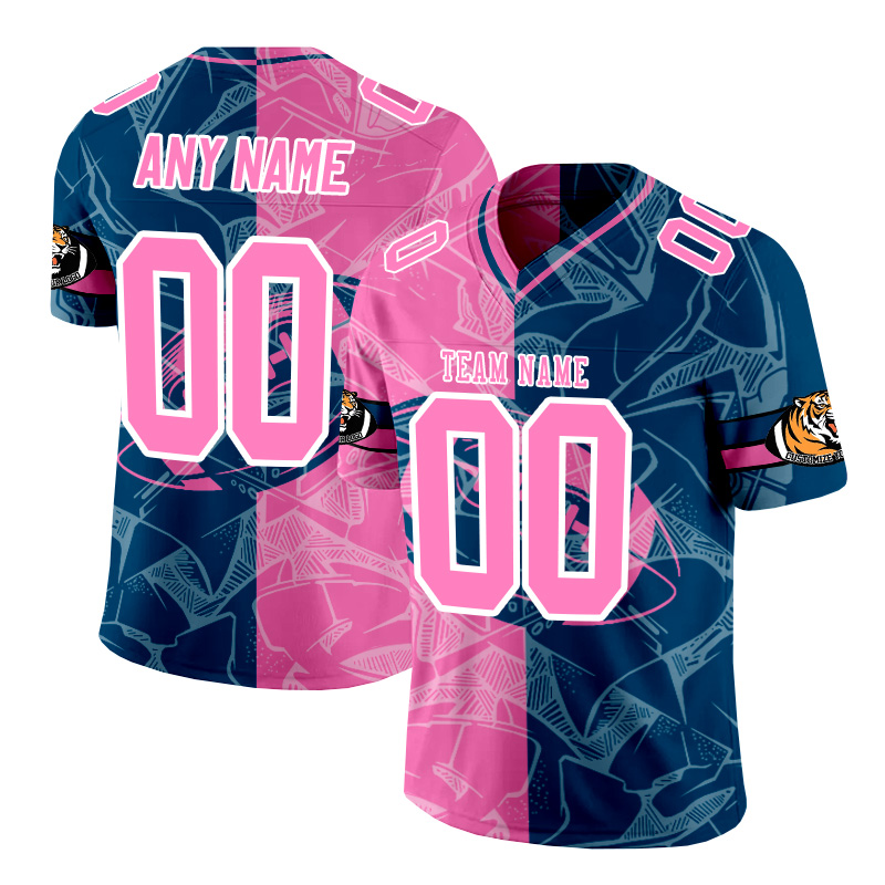 Personalized pink and dark blue patchwork American football jersey