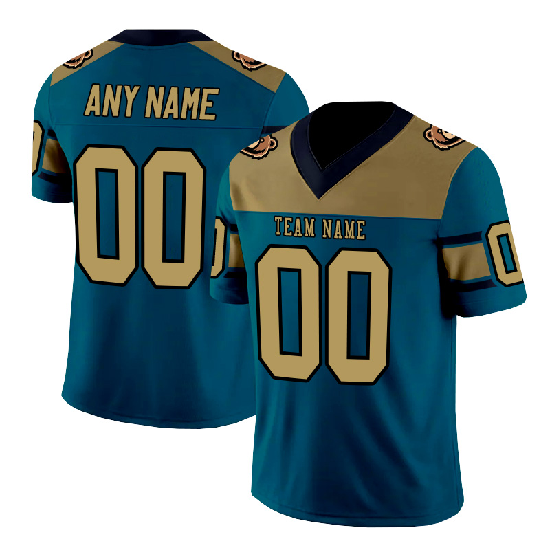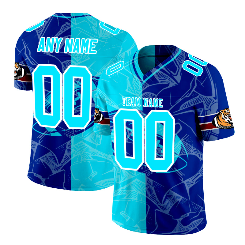 Personalized blue and dark blue patchwork American football jersey