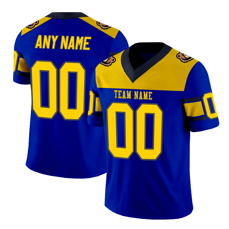 Personalized blue, yellow, and gray striped American football jersey
