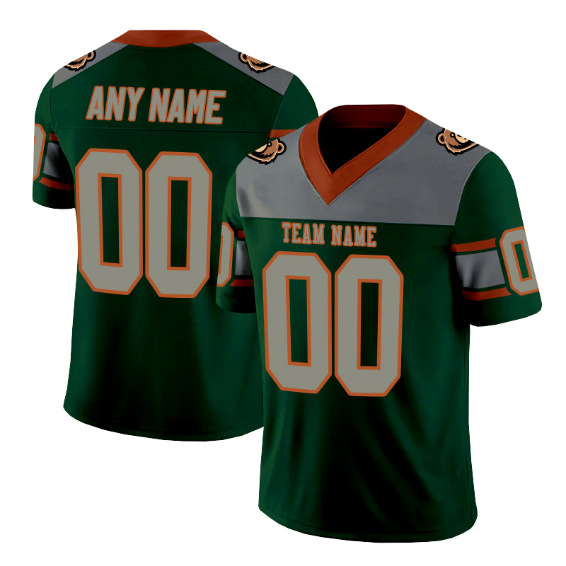 Personalized green, gray, and brown striped American football jersey