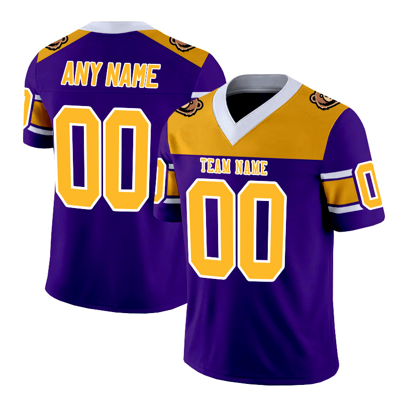 Personalized purple, yellow and white striped American football jersey