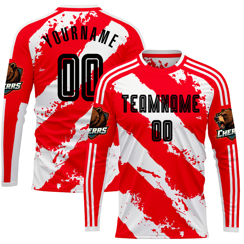 Customized red striped logo football long sleeves