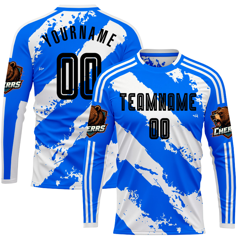 Customized blue striped logo football long sleeves