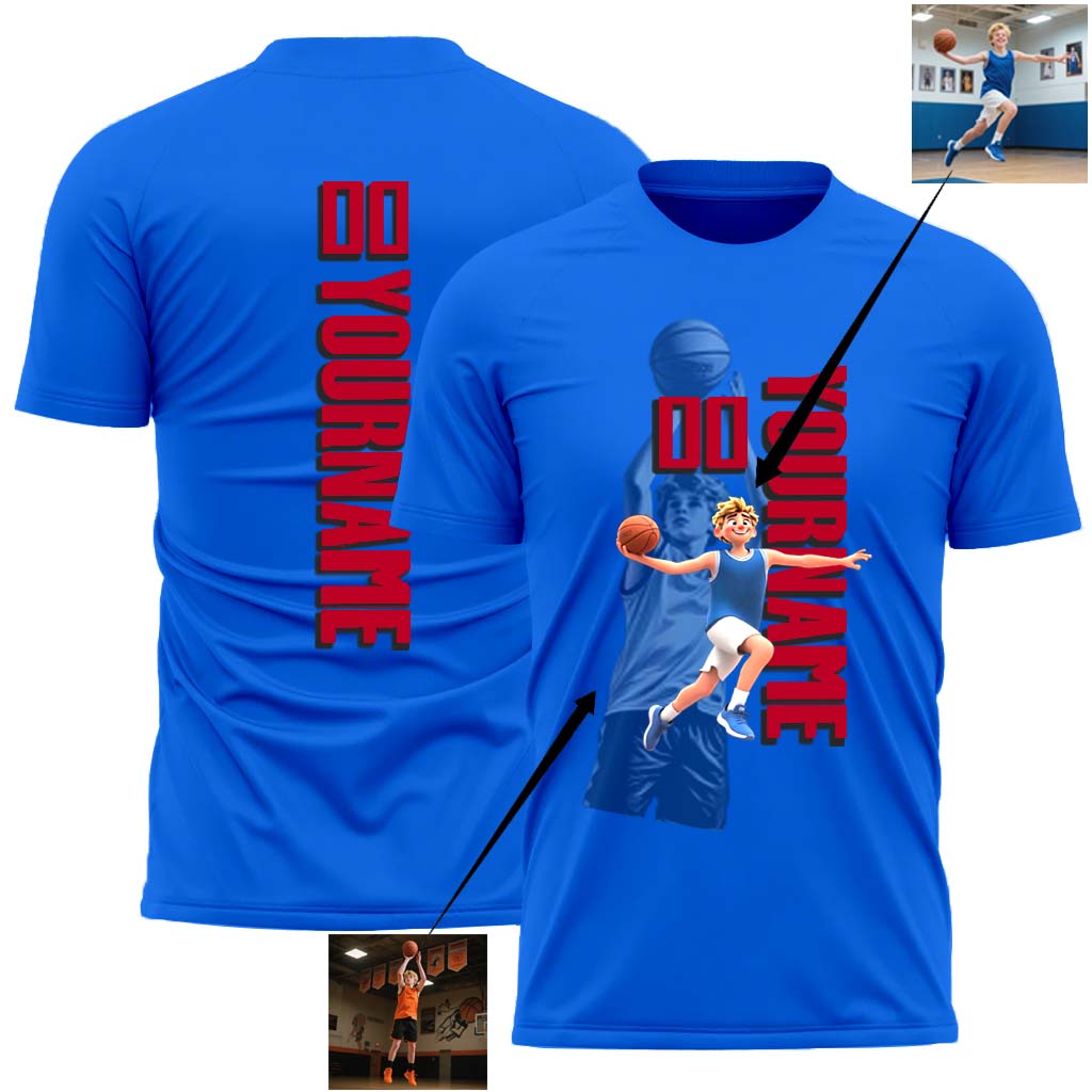 Customized real-person slow-motion jumping and shooting basketball t-shirt