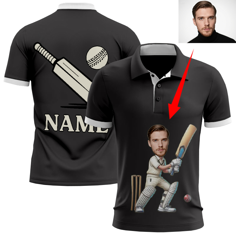 Personalised photo cricket polo shirt