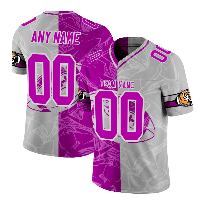Personalized purple and gray patchwork American football jersey
