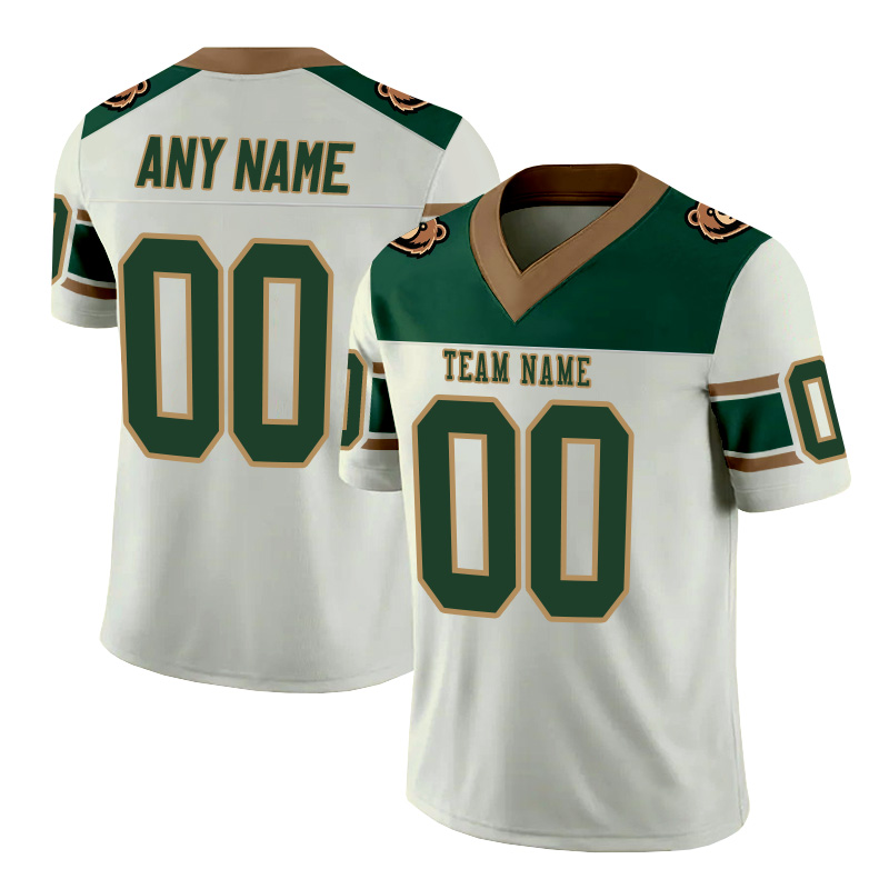 Personalized white, green, and copper striped American football jersey