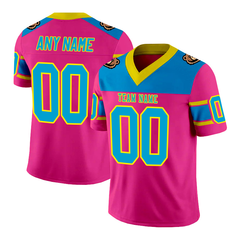 Personalized pink, blue, and yellow striped American football jersey