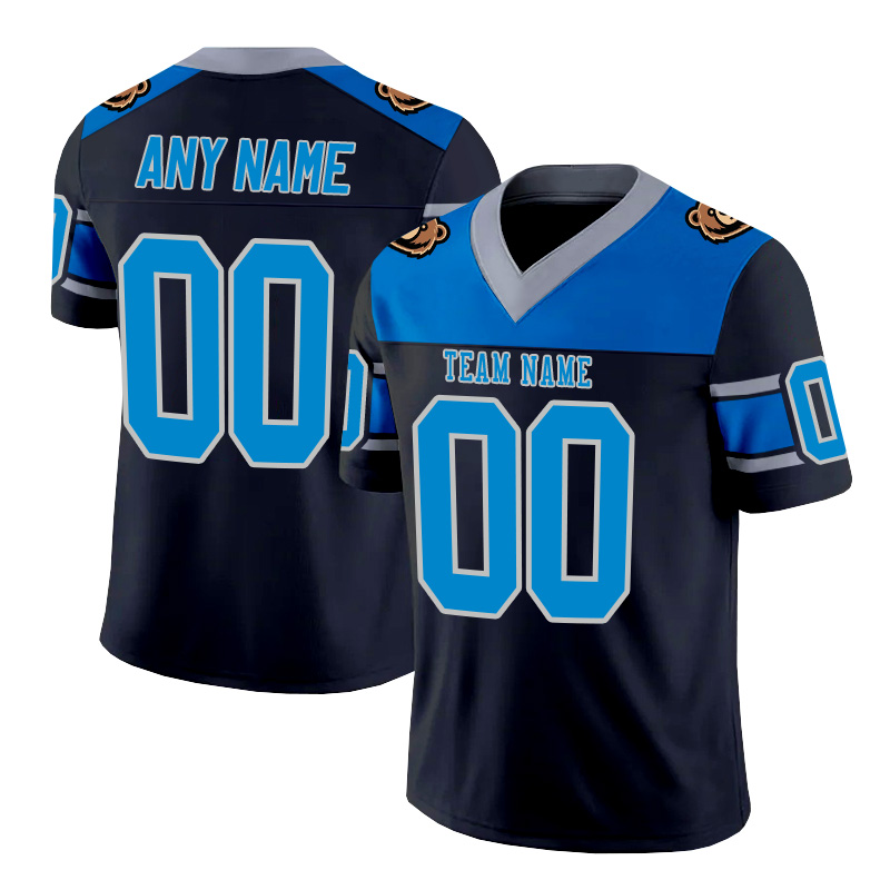Personalized black, blue, and silver striped American football jersey