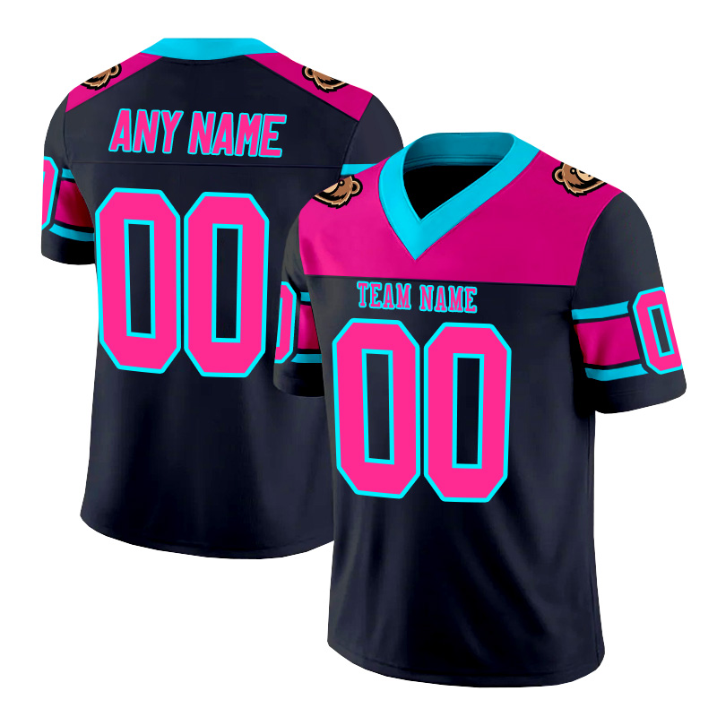 Personalized black, pink, and blue striped American football jersey