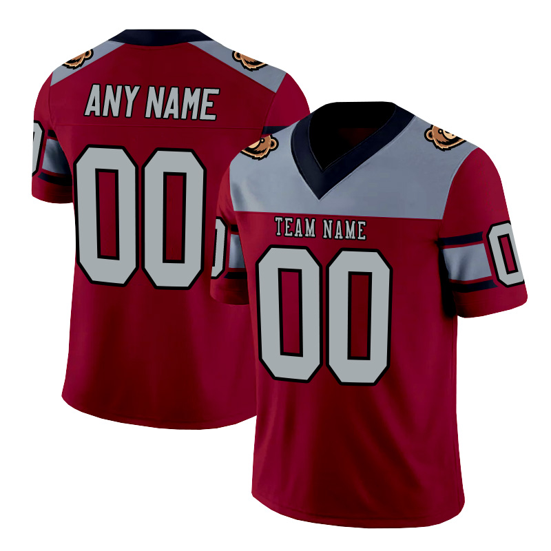 Personalized red, silver, and black striped American football jersey