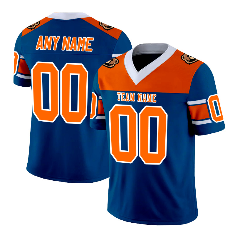 Personalized blue, orange, and white striped American football jersey