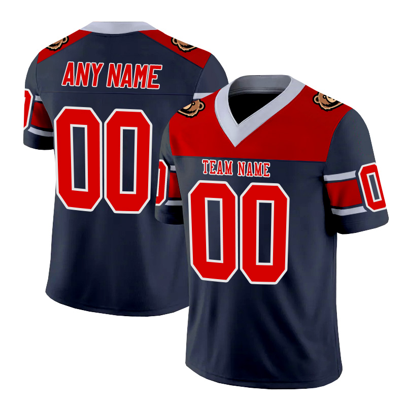 Personalized blue, red, and white striped American football jersey