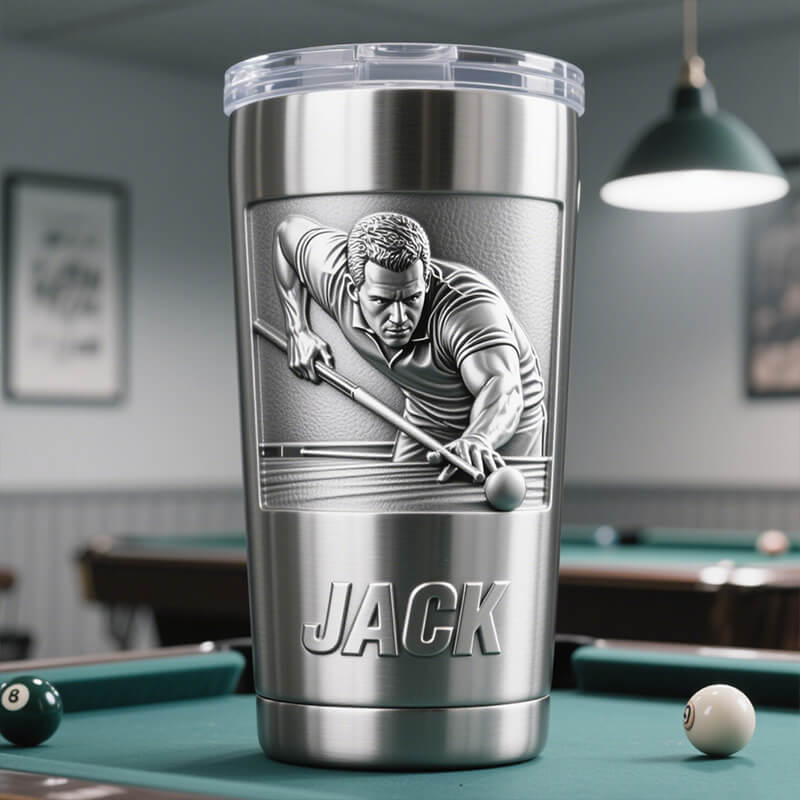 Personalized billiards themed stainless steel mug