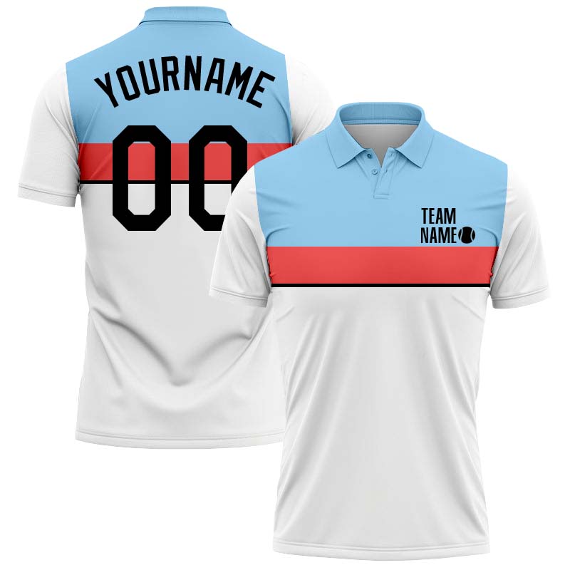 Personalized blue and red tennis polo shirt
